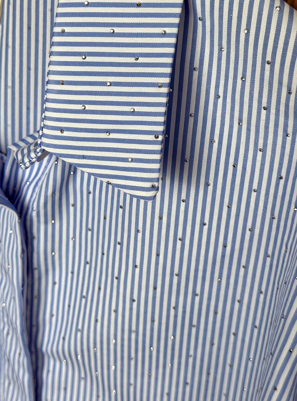 Camisa de rayas tachitas celeste-blanco