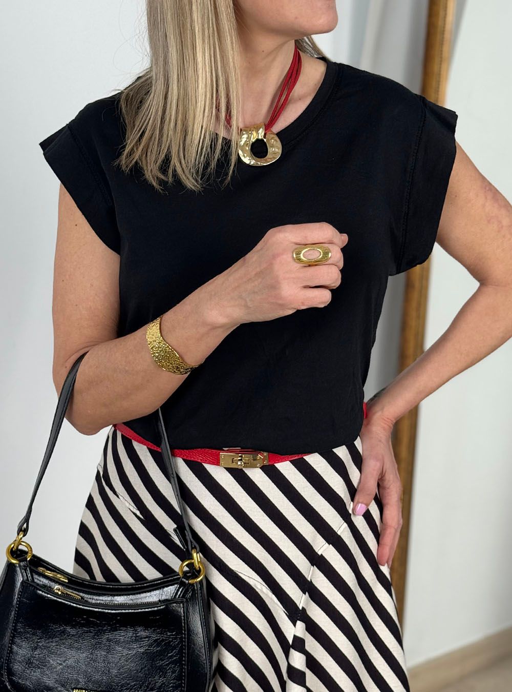 Camiseta básica de manga corta y cuello redondo confeccionada en algodón. Mangas japonesas (o de estilo cap sleeve), que ofrecen un corte fluido y cómodo.