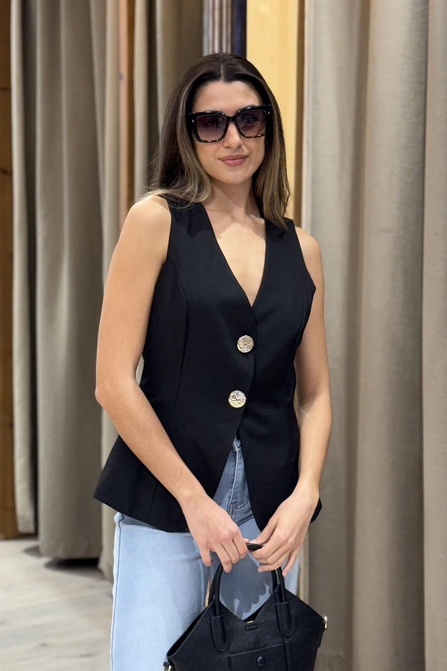 Chaleco de traje botones dorados negro