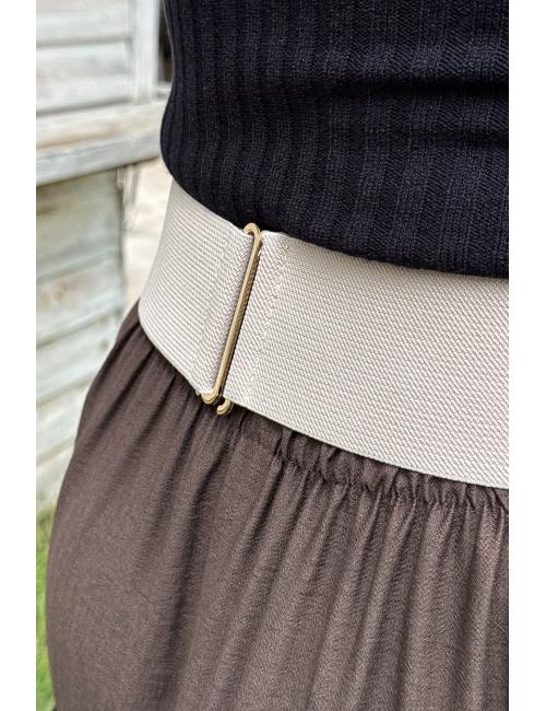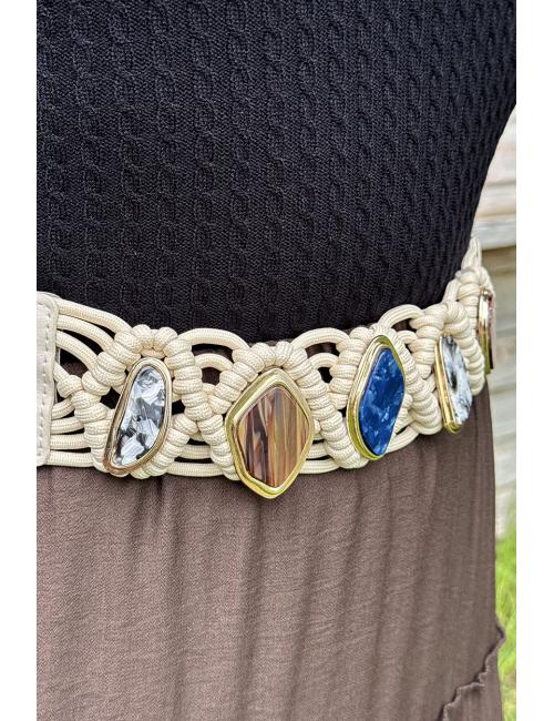 Ecru elastic belt with irregular stones