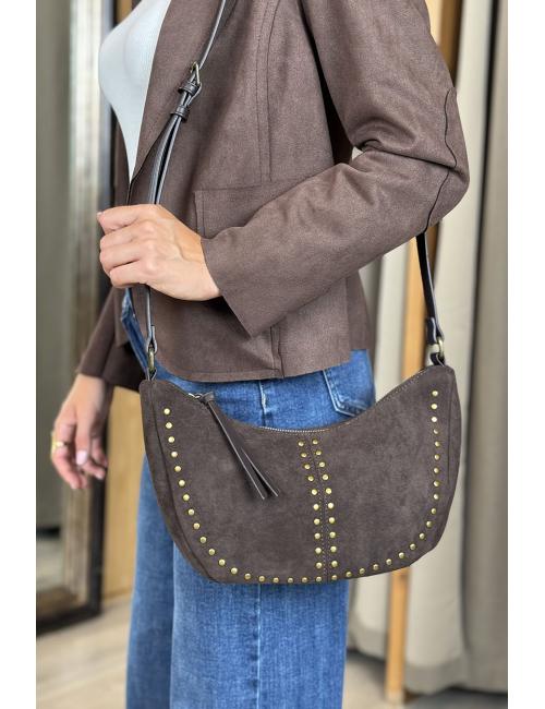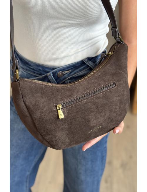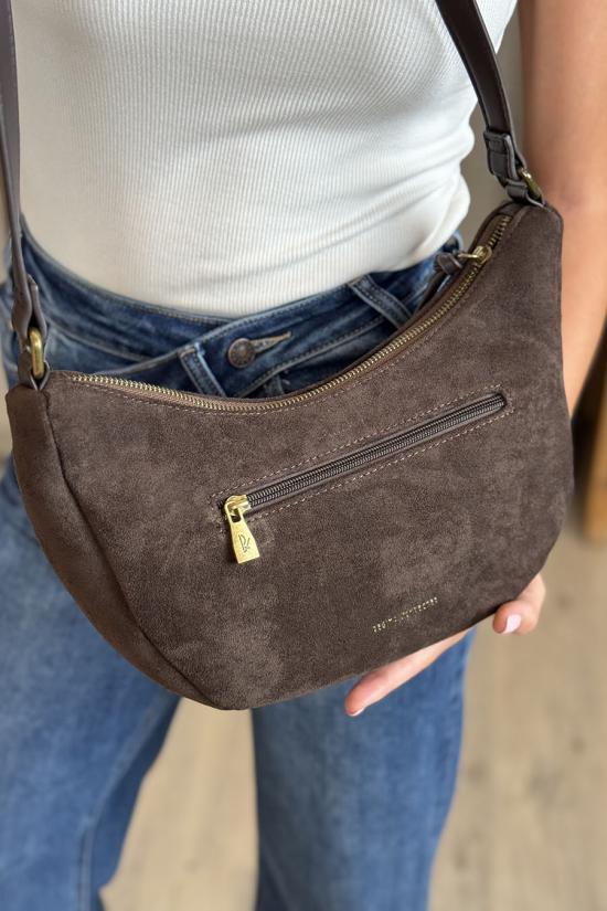 Brown suede shoulder bag
