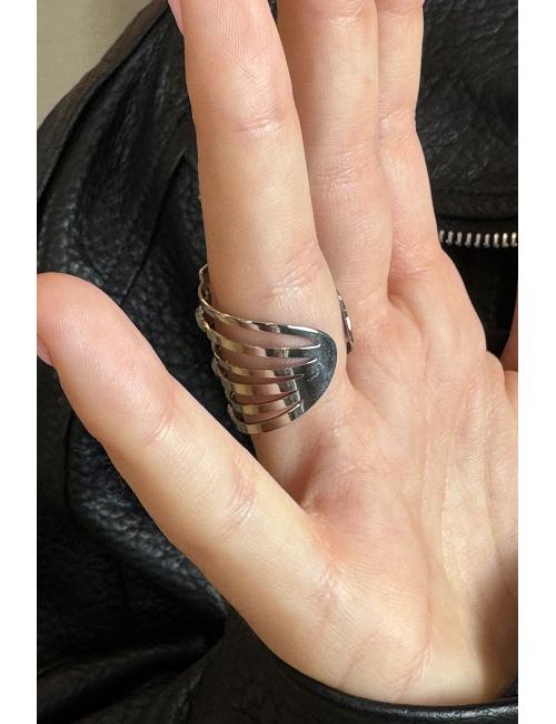 Openwork ring inspired by the design of silver nail heads at the ends.