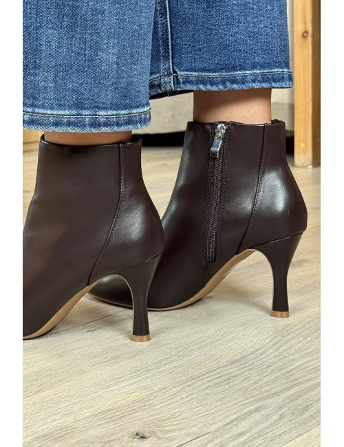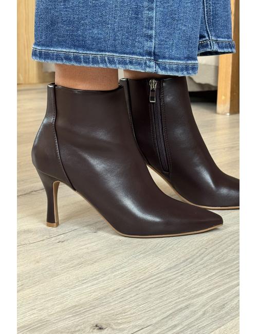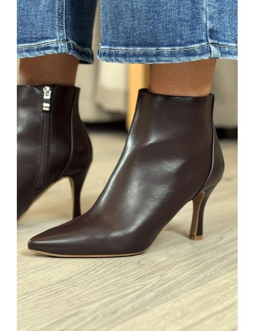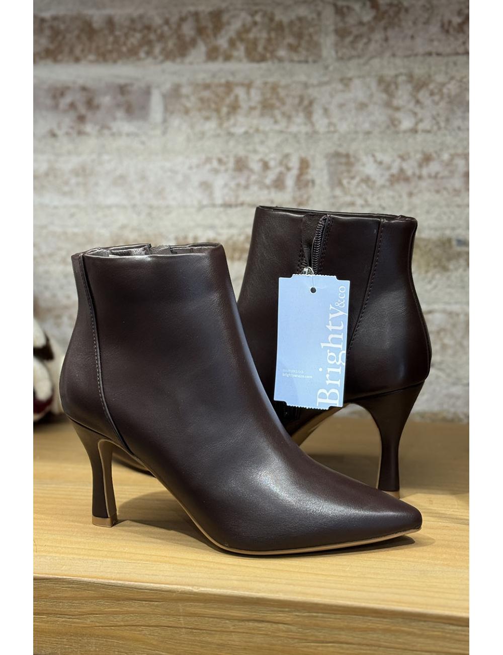 Ankle boots made from synthetic leather. Pointed toe and kitten heel. Zipper closure on the inner side. Add a sophisticated touch to your look with an updated, elegant, and versatile classic.
