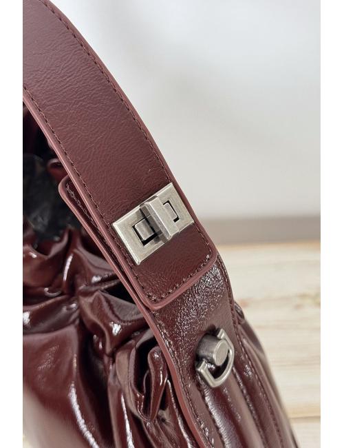 Mini gathered bag with a gloss leather effect. Concealed metal fastening at the top. Includes a long faux leather shoulder strap. Be bold with this bag and give your outfit a shiny, sophisticated touch.
