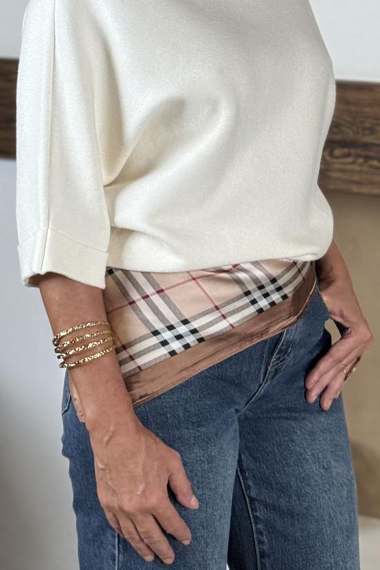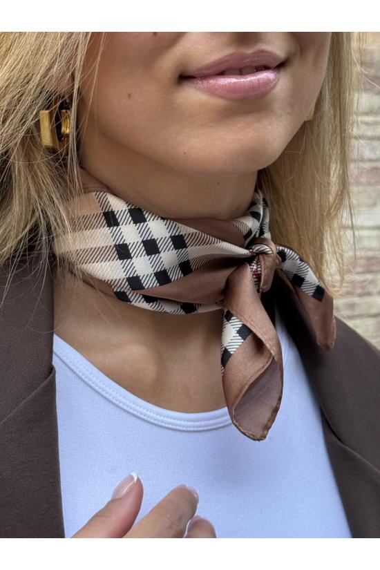 Welsh check patterned scarf. Flowing satin fabric. Ideal for wearing around the neck or as a belt.