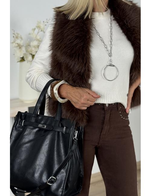 Medium-sized suede-effect bag. Gold stud and rivet detailing in various sizes. Double fixed handle for carrying by hand or long handle for carrying over the shoulder. Central top zip closure. Zipped compartment on the back. The ideal accessory if you want to combine contemporary style with everyday practicality.