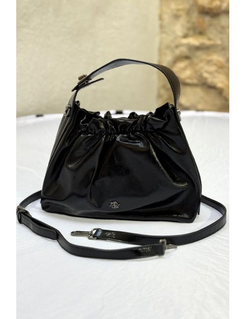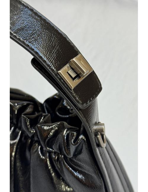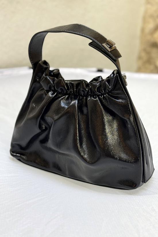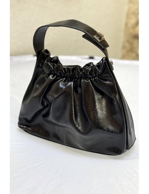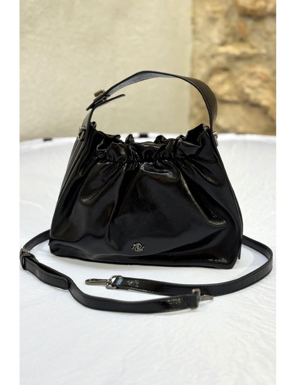 Mini gathered bag with a gloss leather effect. Concealed metal fastening at the top. Includes a long faux leather shoulder strap. Be bold with this bag and give your outfit a shiny, sophisticated touch.