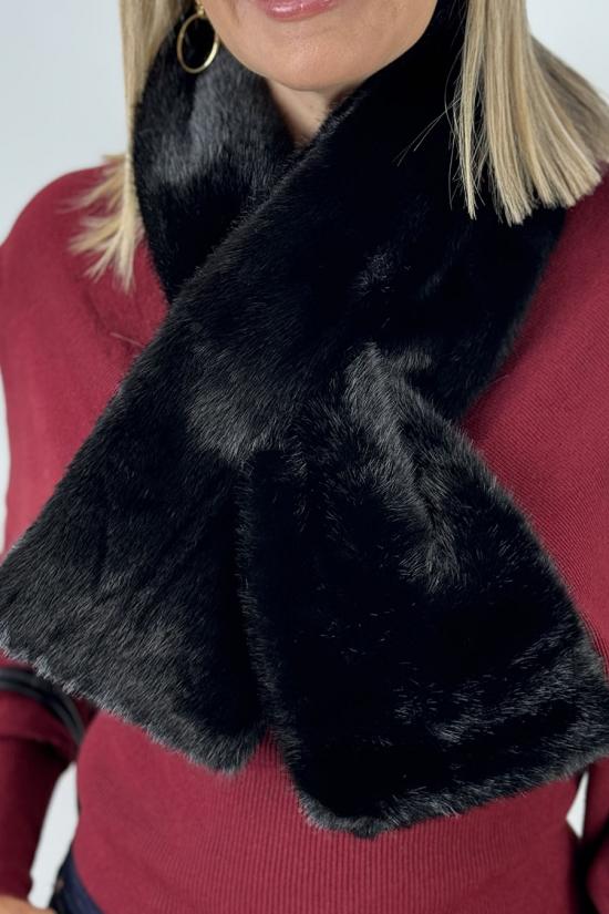 Scarf collar made from very soft synthetic fur. Features a fastening. This winter's must-have accessory that will elevate your outfits and add a bold, stylish touch.