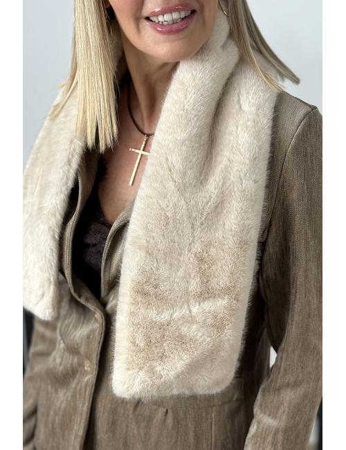 Scarf collar made from very soft synthetic fur. Features a fastening. This winter's must-have accessory that will elevate your outfits and add a bold, stylish touch.