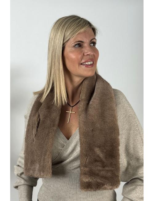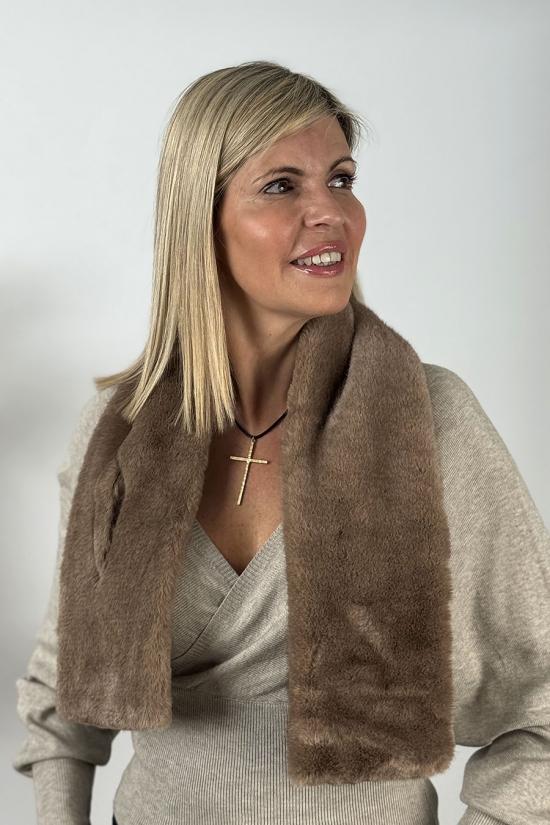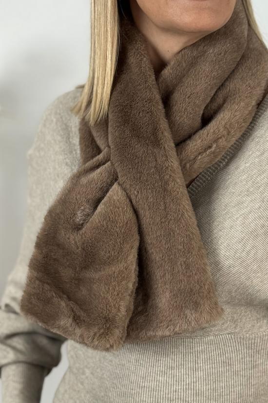 Scarf collar made from very soft synthetic fur. Features a fastening. This winter's must-have accessory that will elevate your outfits and add a bold, stylish touch.