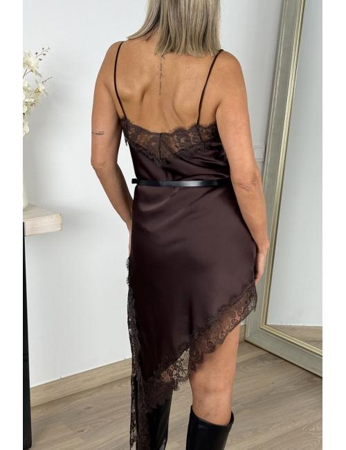 Brown satin slip dress