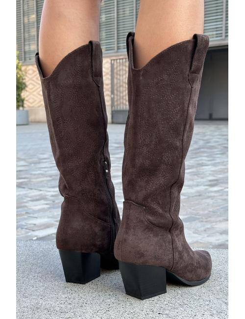 Suede country boot with medium-high shaft and openwork and plain details. Zip fastening on the inside side of the boot. Medium wooden heel and fine straight toe. Updated design of the classic country boot, a versatile shoe that can be combined with dresses, jeans and shorts.