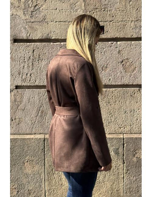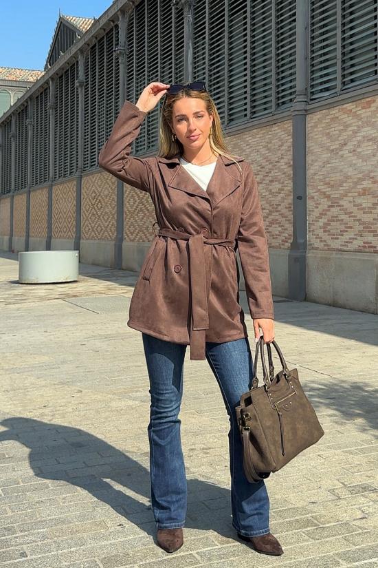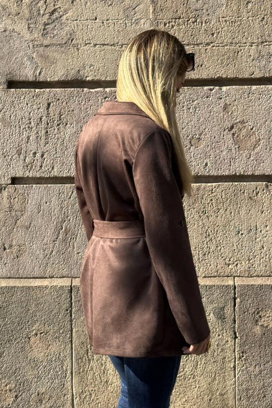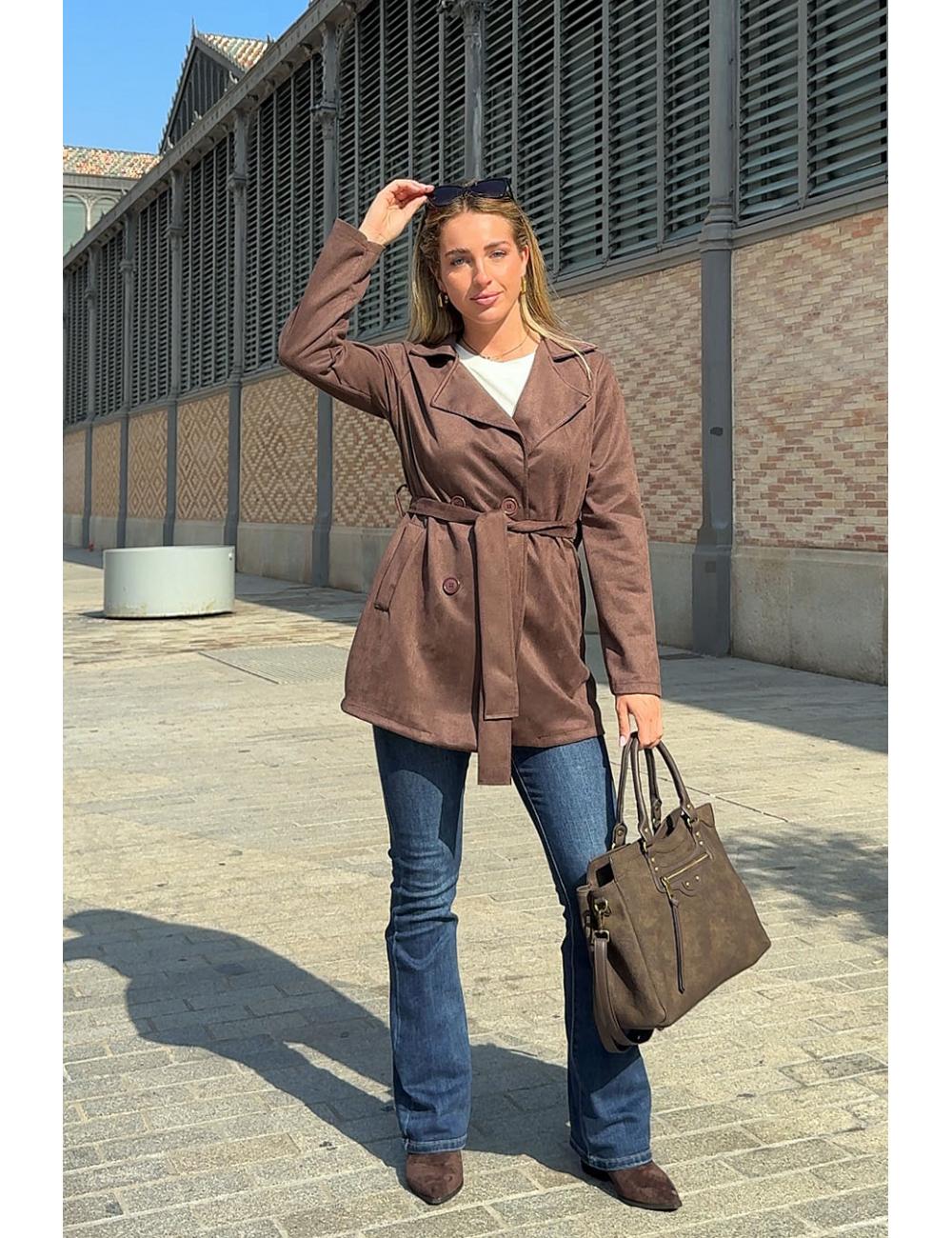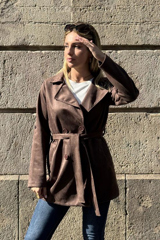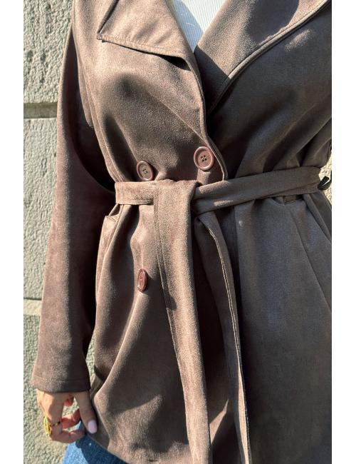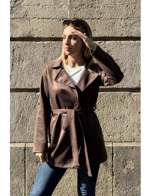 Short brown suede trench coat