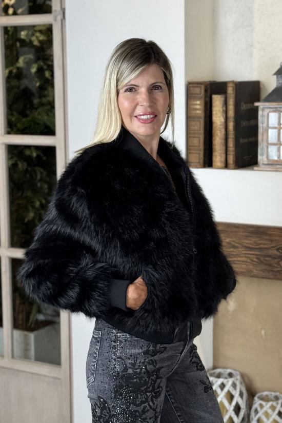 Black faux fur jacket