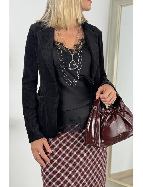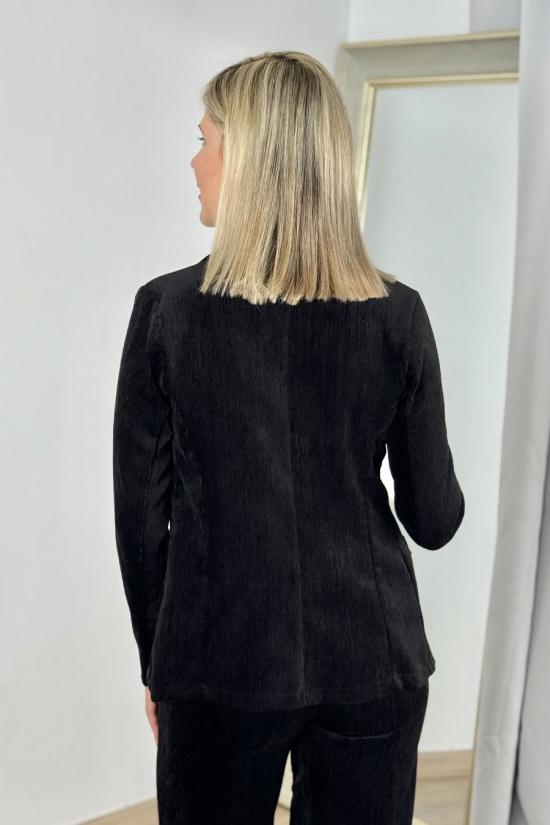 Blazer made from velvet fabric. Tailored fit, tailored lapel, inner lining and front closure with two pearl buttons. Includes two decorative front pockets with flaps. A unique and stylish blazer, ideal for your everyday and weekend looks.
