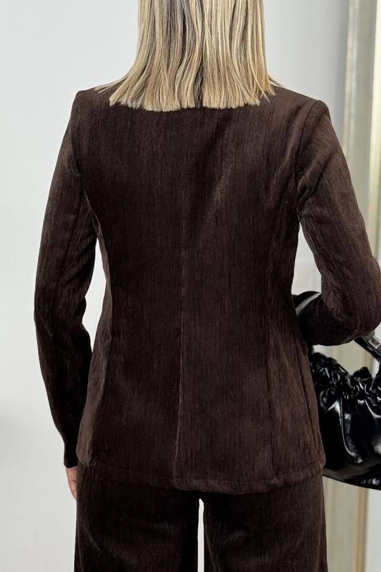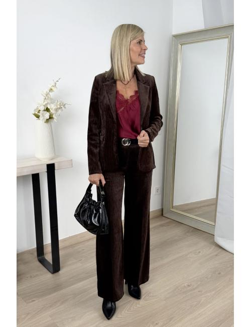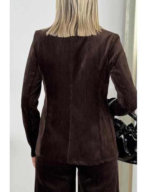 Blazer made from velvet fabric. Tailored fit, tailored lapel, inner lining and front closure with two pearl buttons. Includes two decorative front pockets with flaps. A unique and stylish blazer, ideal for your everyday and weekend looks.