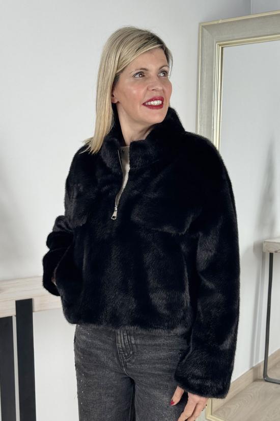Black short jacket with fur effect