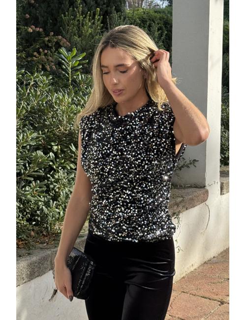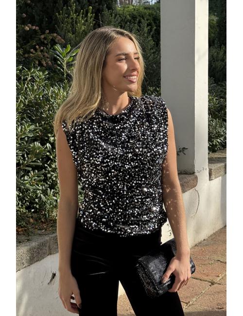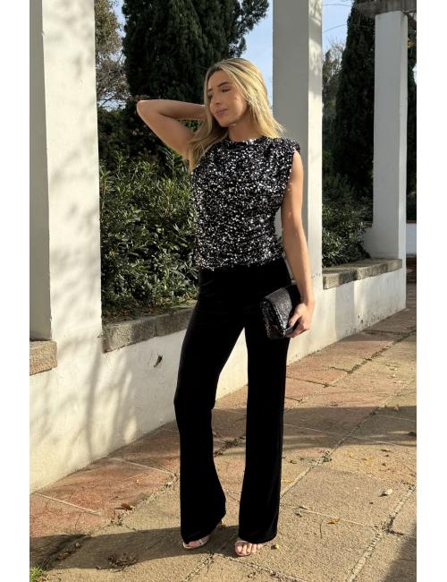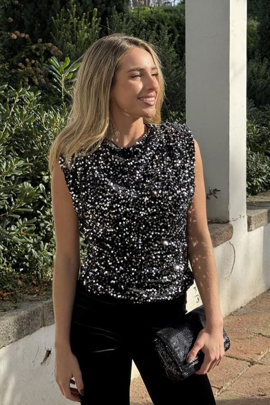 Black-silver sequined velvet blouse