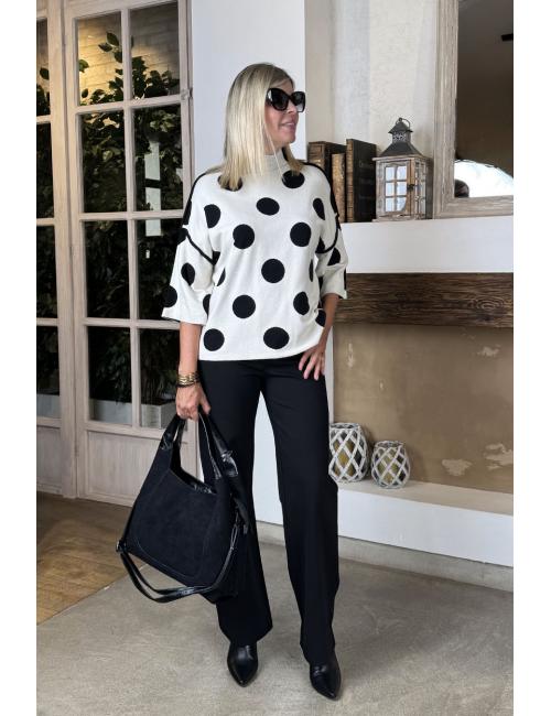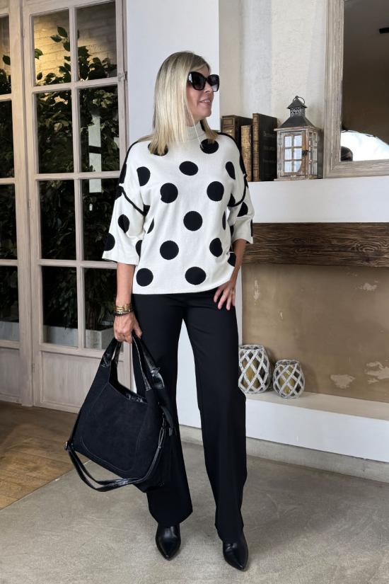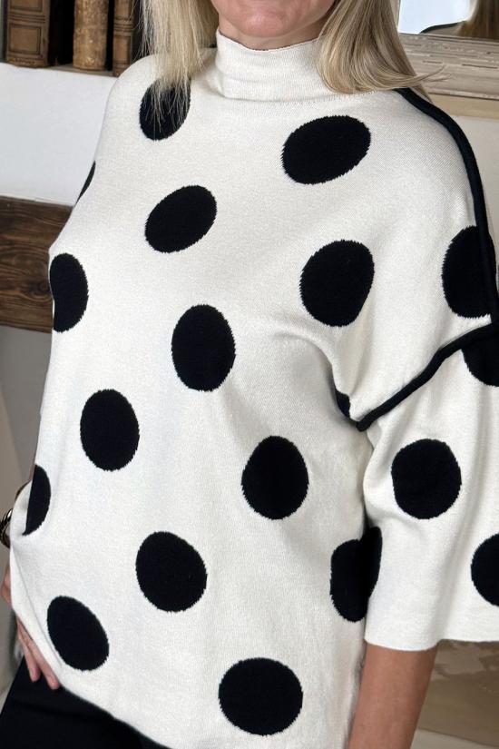 Oversized jumper with wide 3/4 sleeves, made from stretch knit fabric. Features a Perkins collar. Contrasting polka dot print. A jumper for everyday wear that adds a casual, original and stylish touch to your outfit.