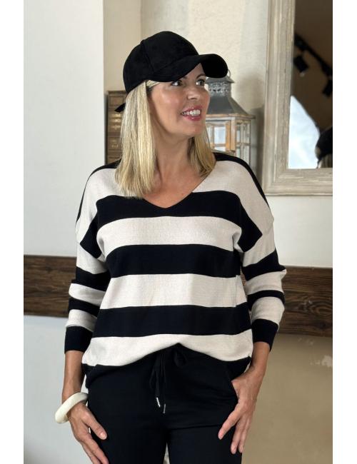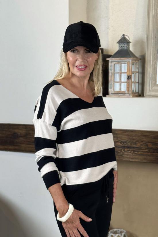 Black-beige striped jumper