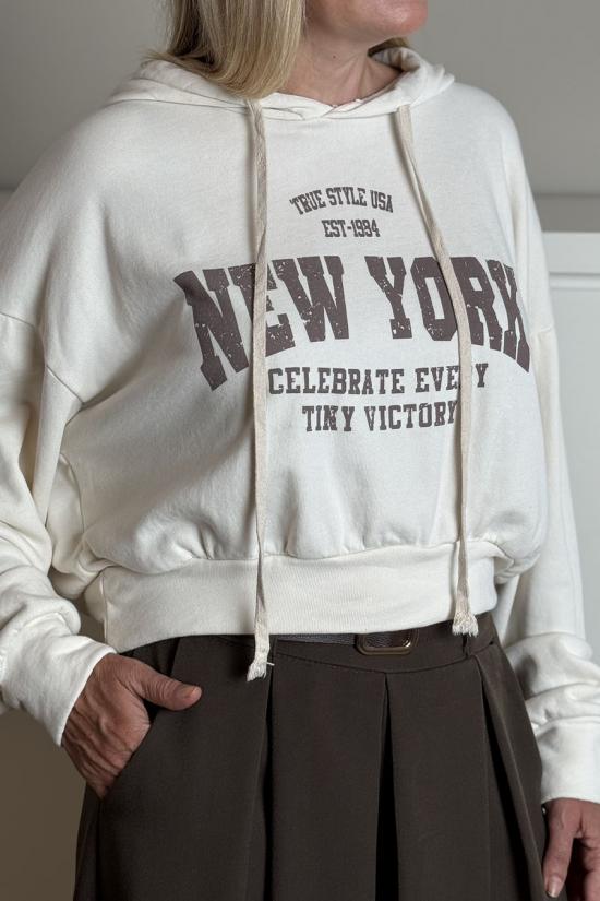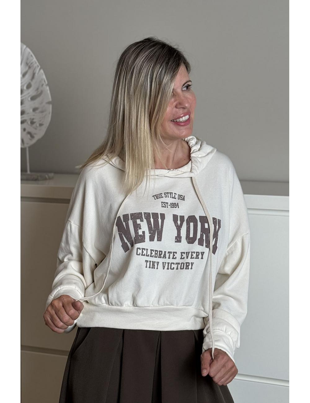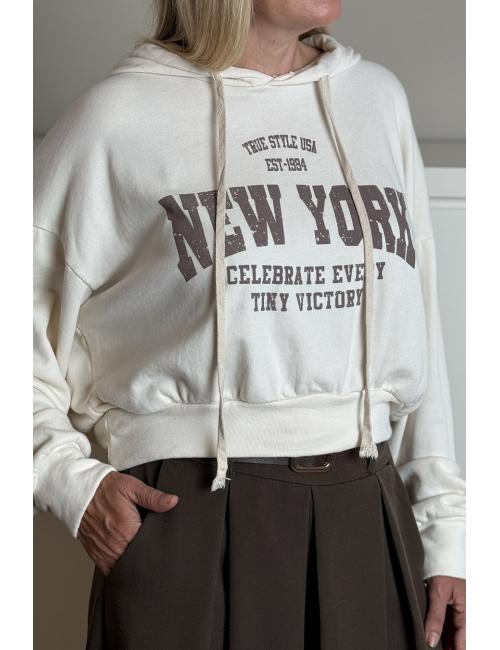 Short sweatshirt with ‘New York’ print on the front, adding a casual touch to the garment. Hood with drawstrings. Perfect for your most relaxed, casual and informal looks.