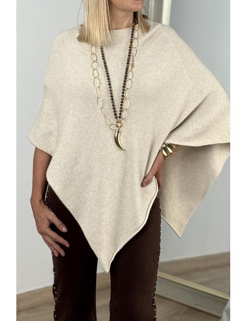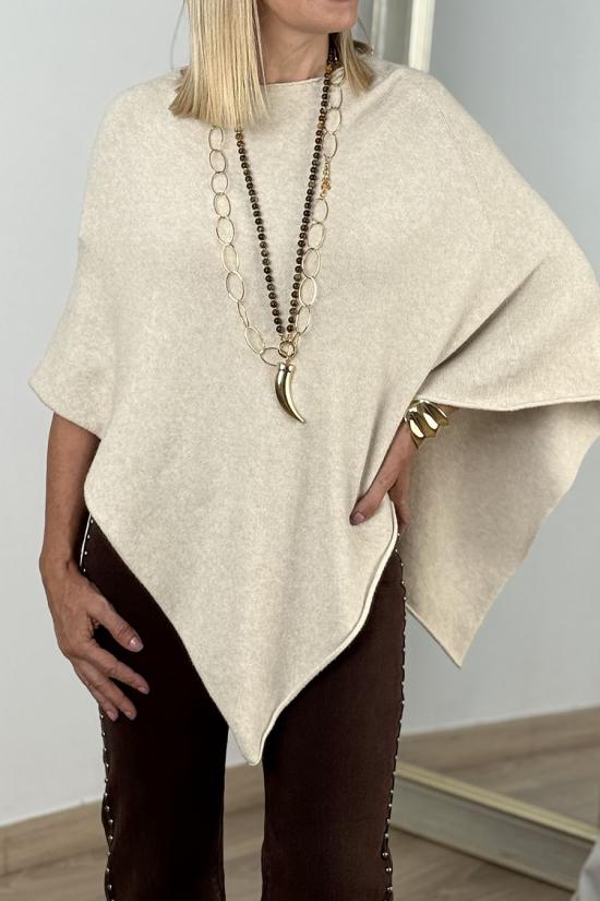Sleeveless jersey poncho made from marled knit fabric. Swap your traditional jumper for this knitted poncho and add an original and fun touch to your look.