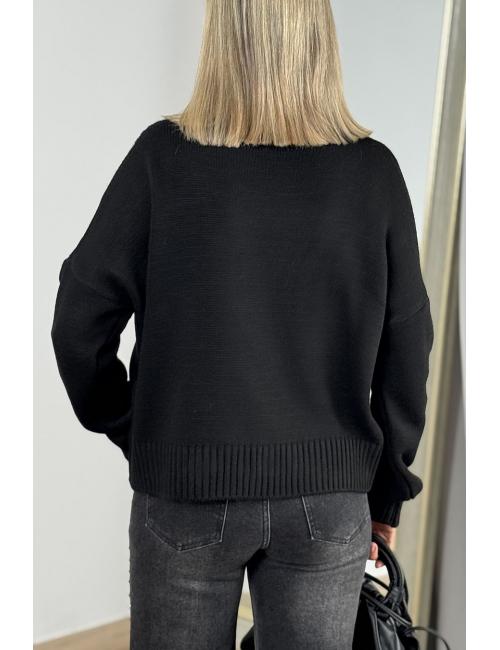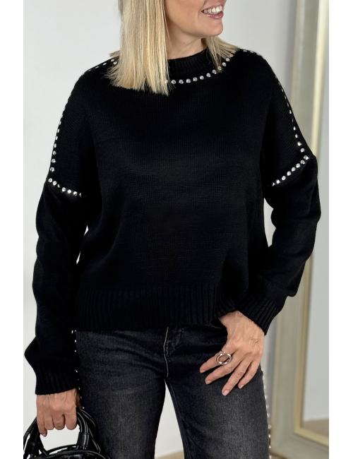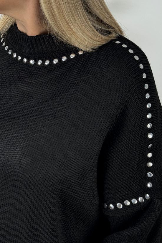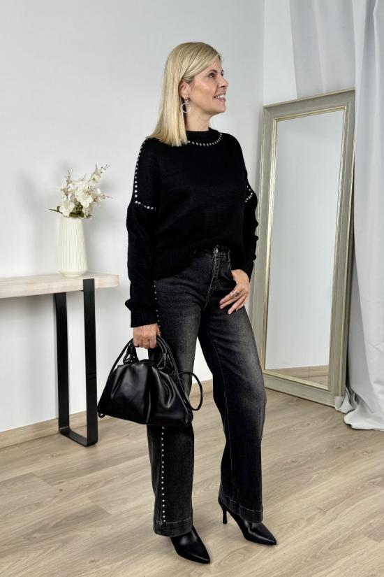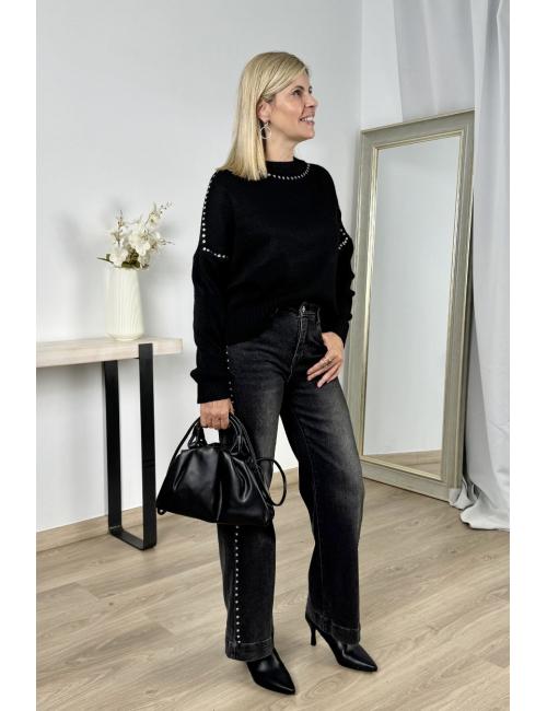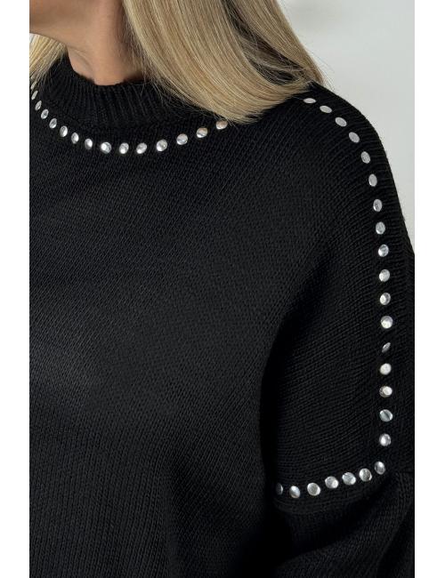 Oversized knitted jumper with silver stud detailing on the neckline and half sleeves. Made from a stretchy knit fabric that stands out for its softness, durability, elasticity and ease of care. A soft and warm jumper, ideal for adding a fun and sophisticated touch to your looks with trousers and skirts, both for everyday wear and weekends.