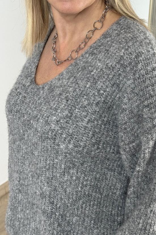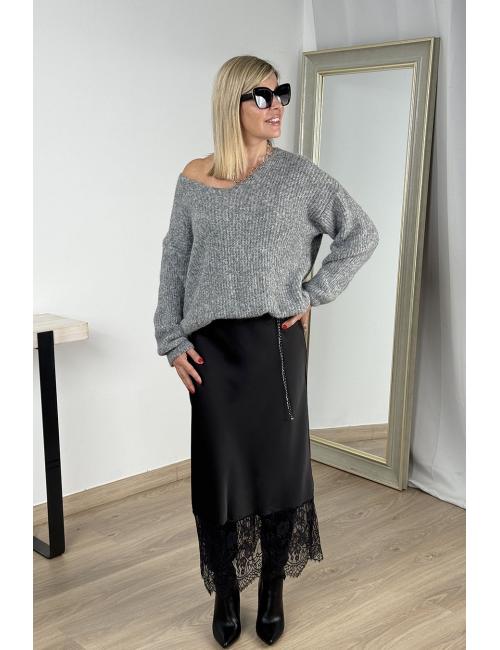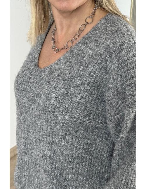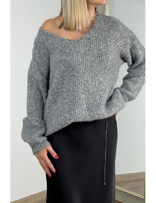 Oversized fine wool jumper with a V-neck. It is super soft to the touch and can be worn off the shoulder or in the conventional way. A must-have for your winter looks.