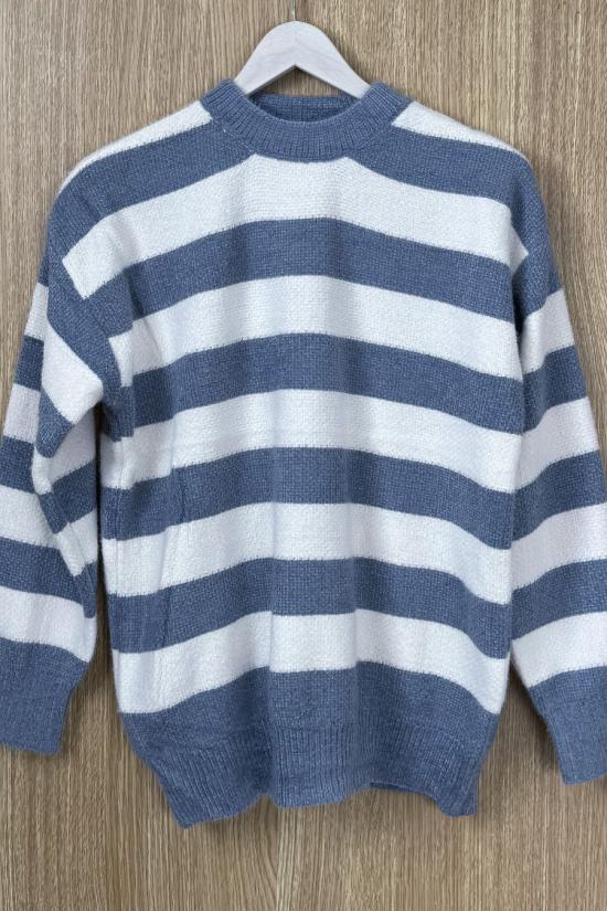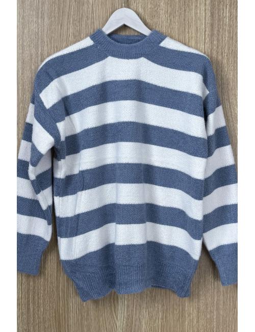 Relaxed-fit chenille knit jumper with contrasting horizontal stripes. Round neck and ribbed cuffs.
