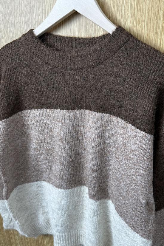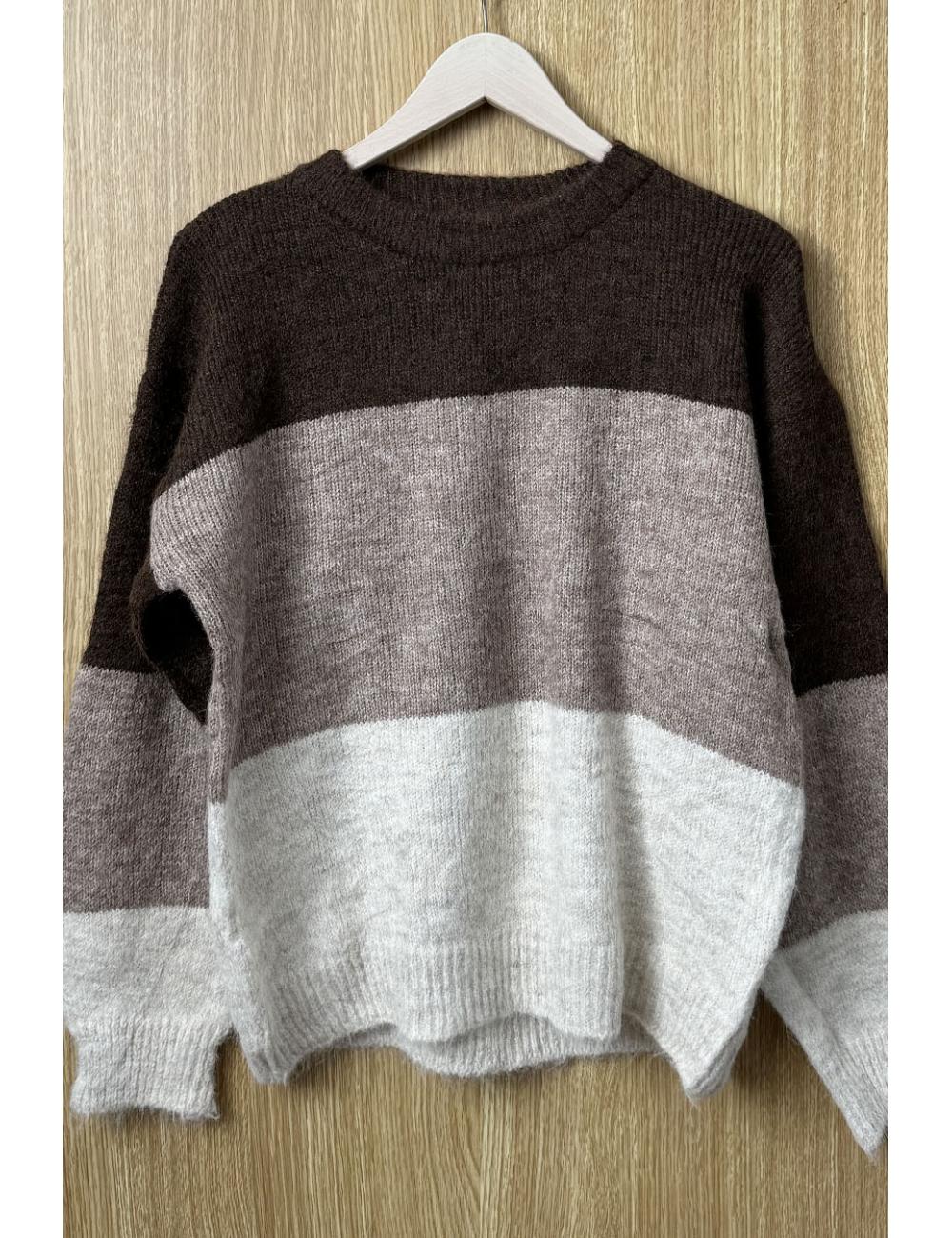 Jumper made from extra-soft marled wool with a relaxed fit. Round neck, ribbed cuffs and waistband. Three large stripes in different shades of the same colour.