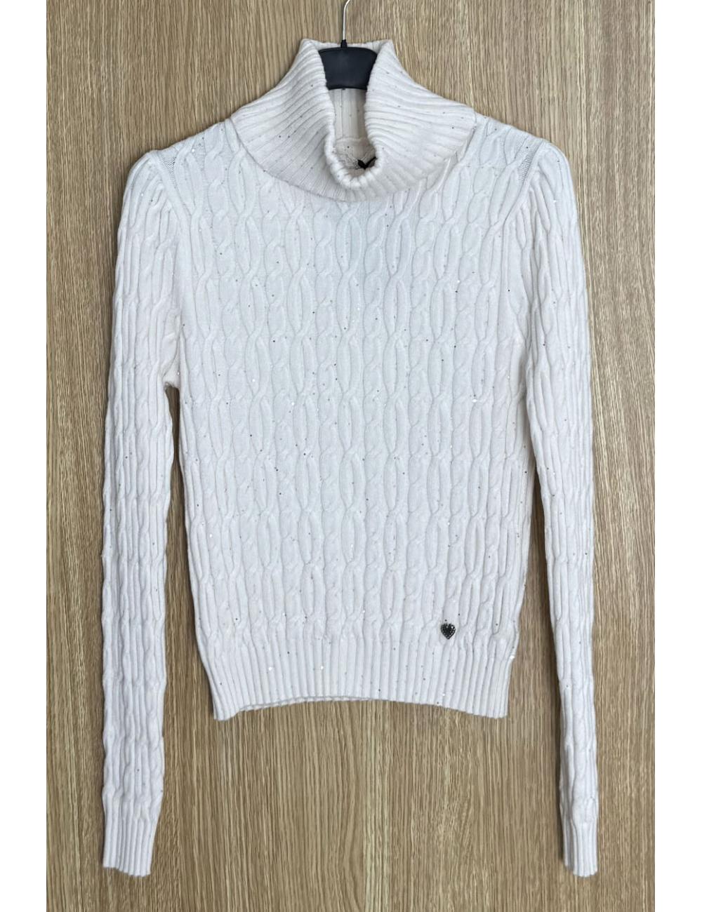 Long-sleeved jumper with a high neck and mini sequins scattered throughout. Made from medium-weight cable knit fabric. A jumper that perfectly combines comfort with style.