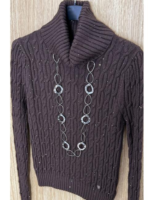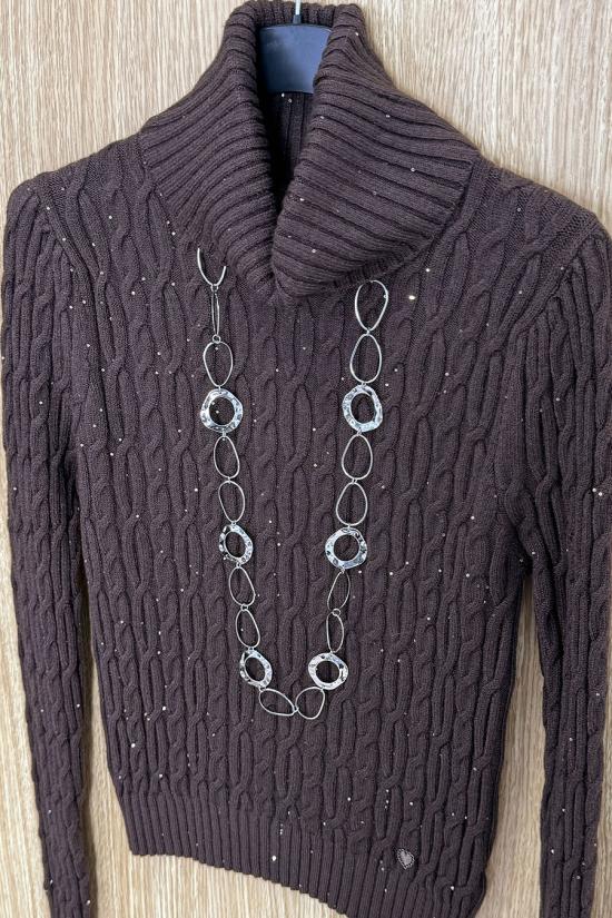 Long-sleeved jumper with a high neck and mini sequins scattered throughout. Made from medium-weight cable knit fabric. A jumper that perfectly combines comfort with style.