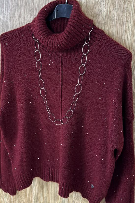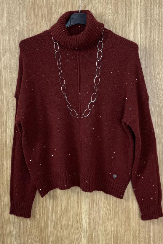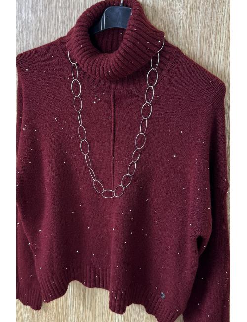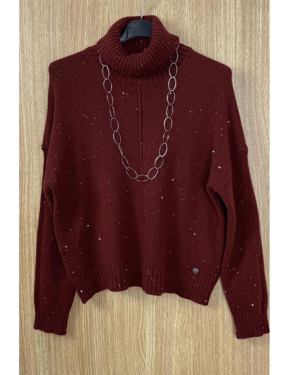 Long-sleeved jumper with a high neck and mini sequins scattered throughout. Decorative vertical stitching detail in the middle of the jumper. Made from fine-gauge plain knit fabric. A unique jumper for your festive outfits.