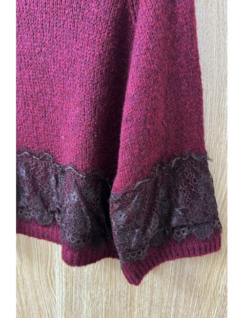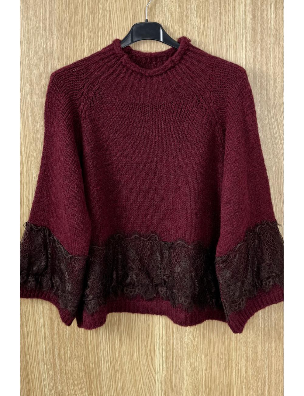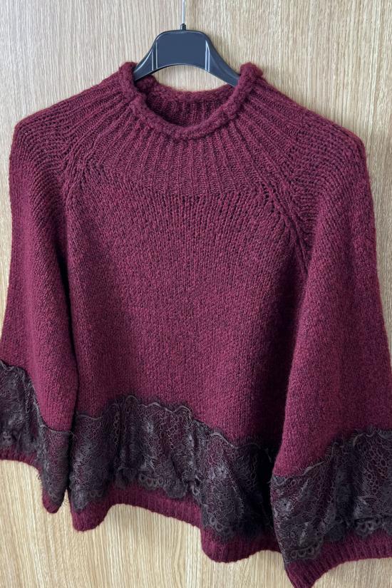 Oversized long-sleeved jumper with a Perkins collar and lace detailing on the hem and cuffs. Made from medium-weight wool. An original jumper for everyday wear and also for your festive looks.
