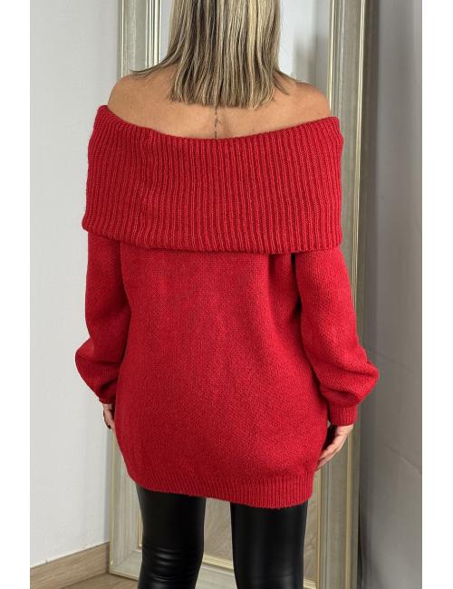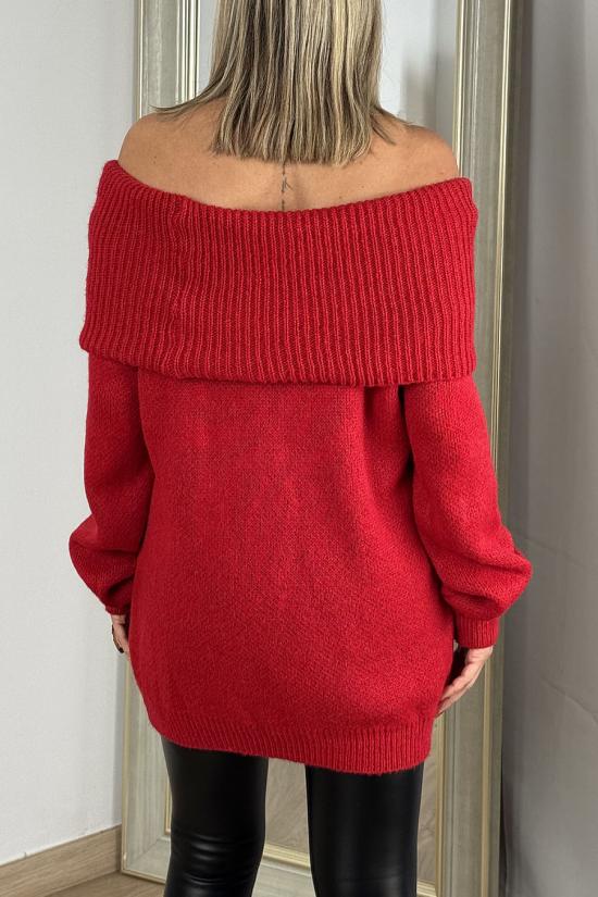 Smooth stretch knit jumper. Ribbed detailing on cuffs and collar. Bardot-style roll neck.