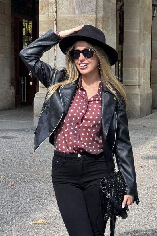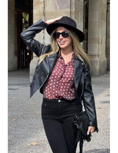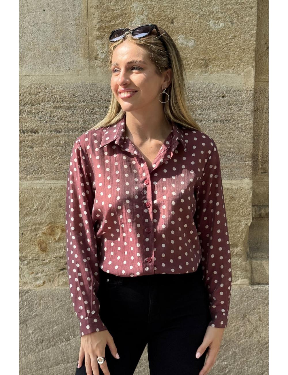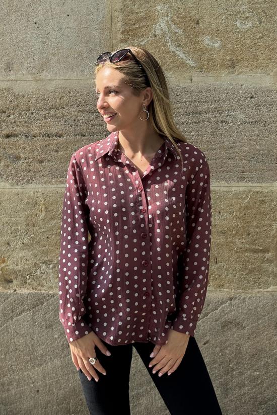 Maroon polka dot shirt