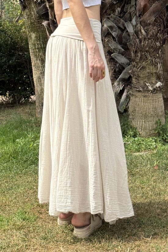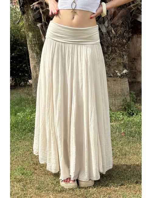 Ibizan long skirt. It includes a wide elastic sash at the waist that makes it adaptable to several sizes.