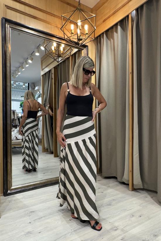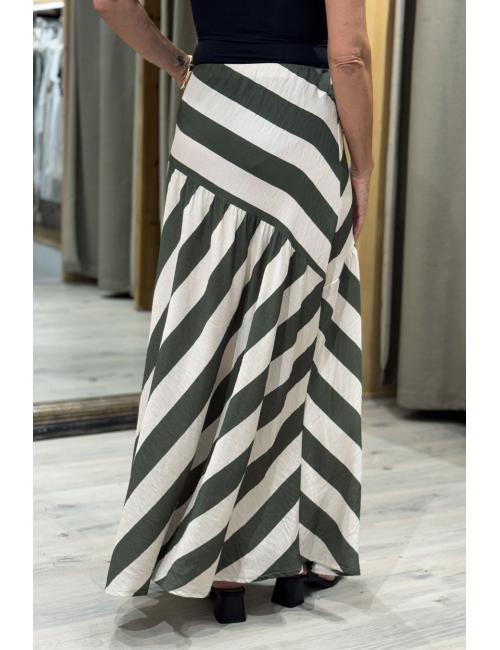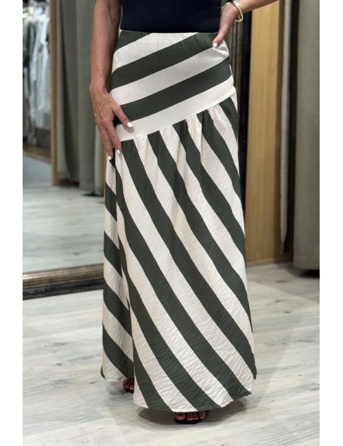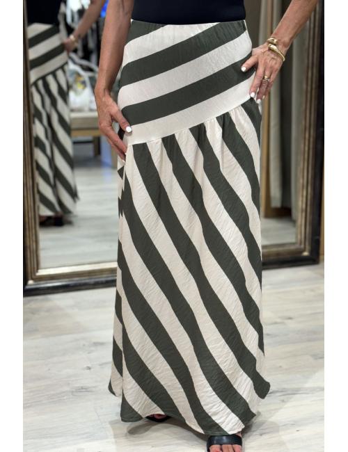 Beige-khaki diagonal stripe skirt