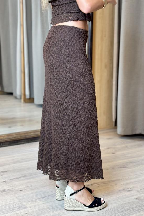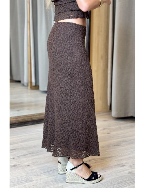 Long flared maxi skirt. Made from embroidered tulle. Elasticated waistband to fit a range of sizes.
