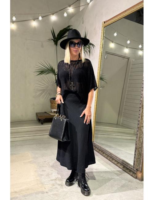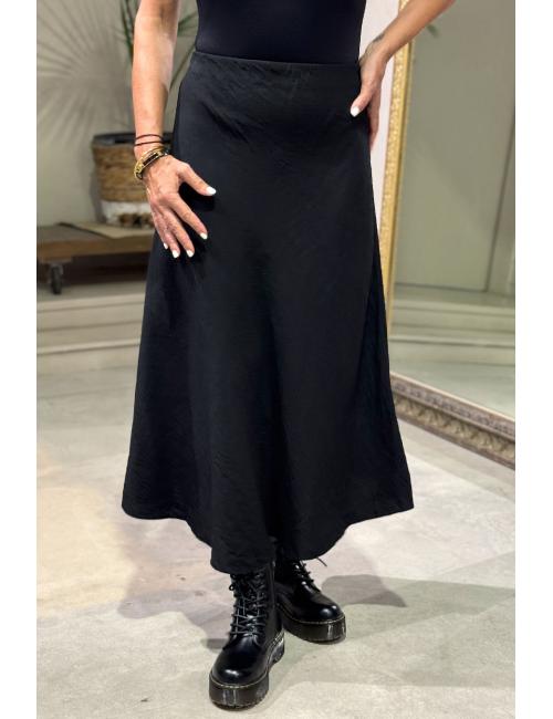 Long midi skirt made from viscose fabric. High rise and elasticated waistband, making it suitable for a range of sizes. Flounce at the hem.