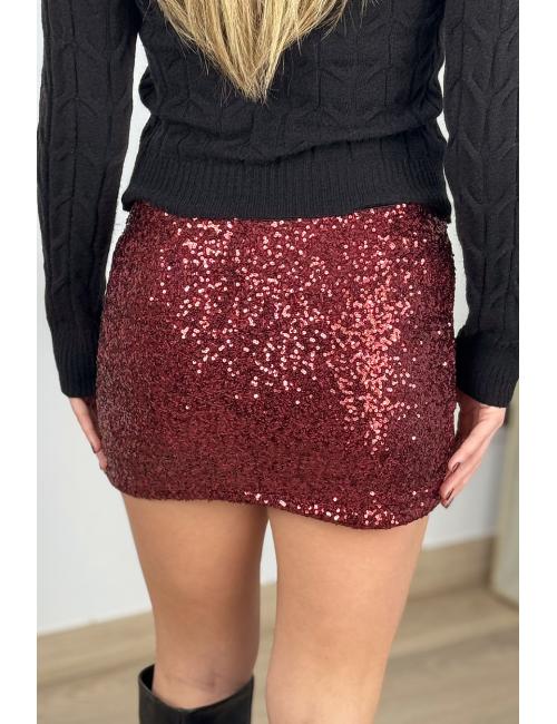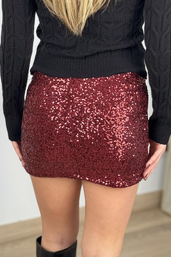 Stretch sequin mini skirt. Straight cut with built-in fine-knit boxer briefs.