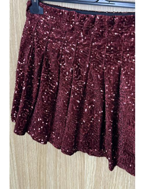 Short pleated skirt made of velvet combined with sequins. Elasticated waistband and fine knit inner briefs.