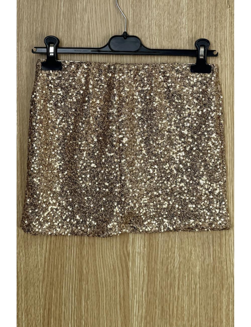 Stretch sequin mini skirt. Straight cut with built-in fine-knit boxer briefs.