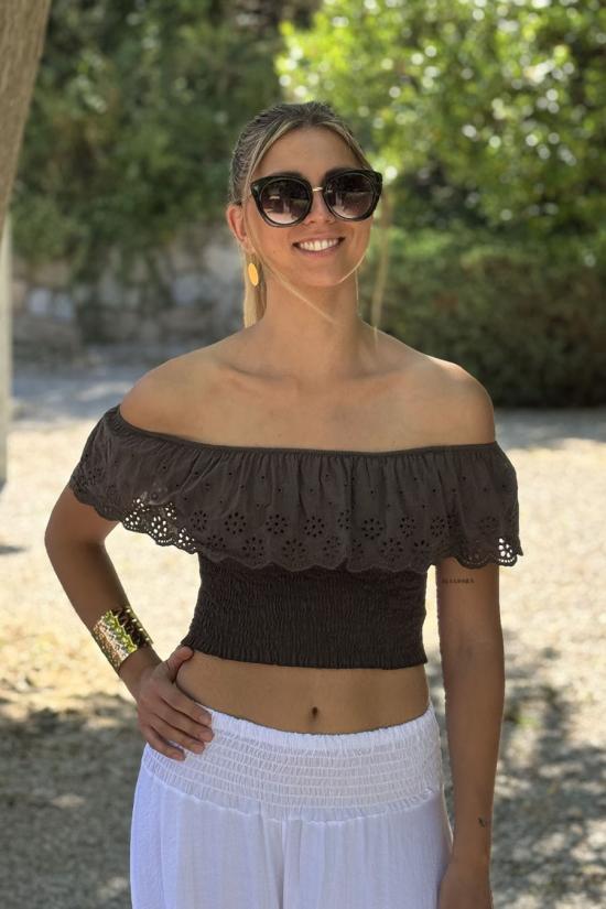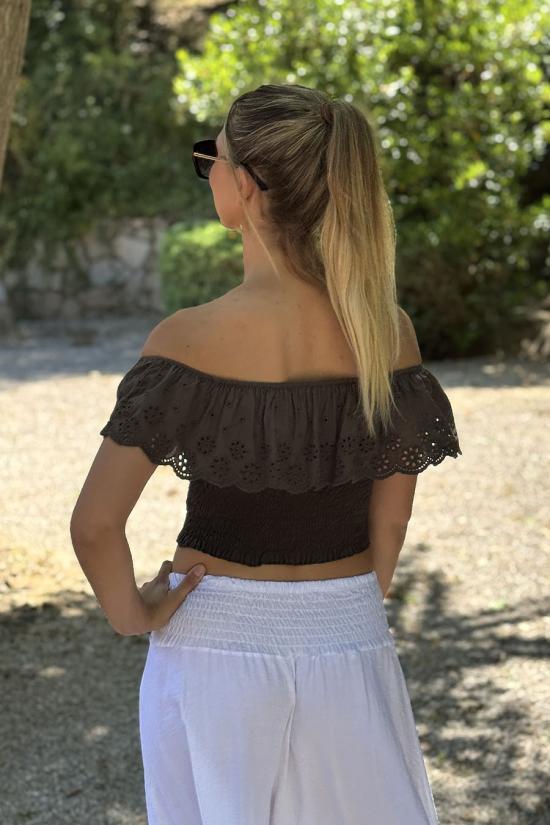 English embroidered crop top brown