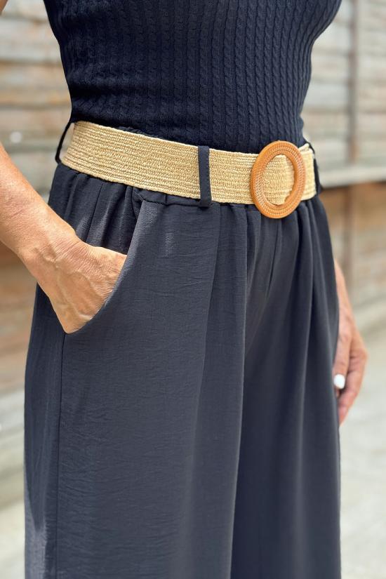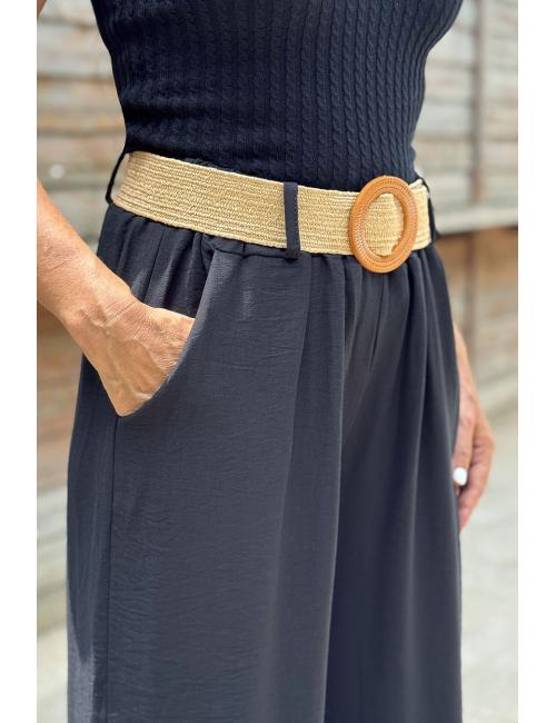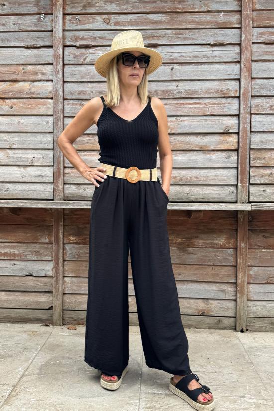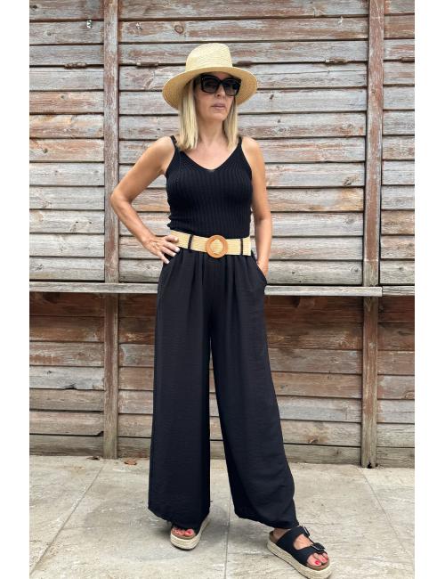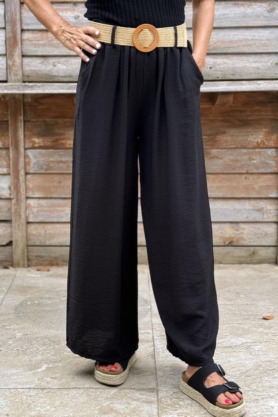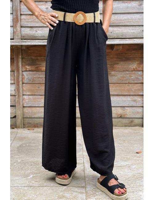 Fluid palazzo pants in fine cotton. Wide elastic waistband to fit various sizes.