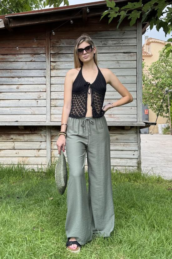 Fine cotton flowing palazzo trousers. Elasticated waistband adaptable to various sizes.