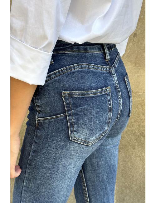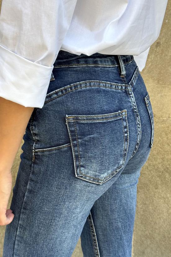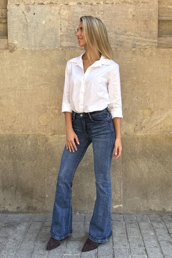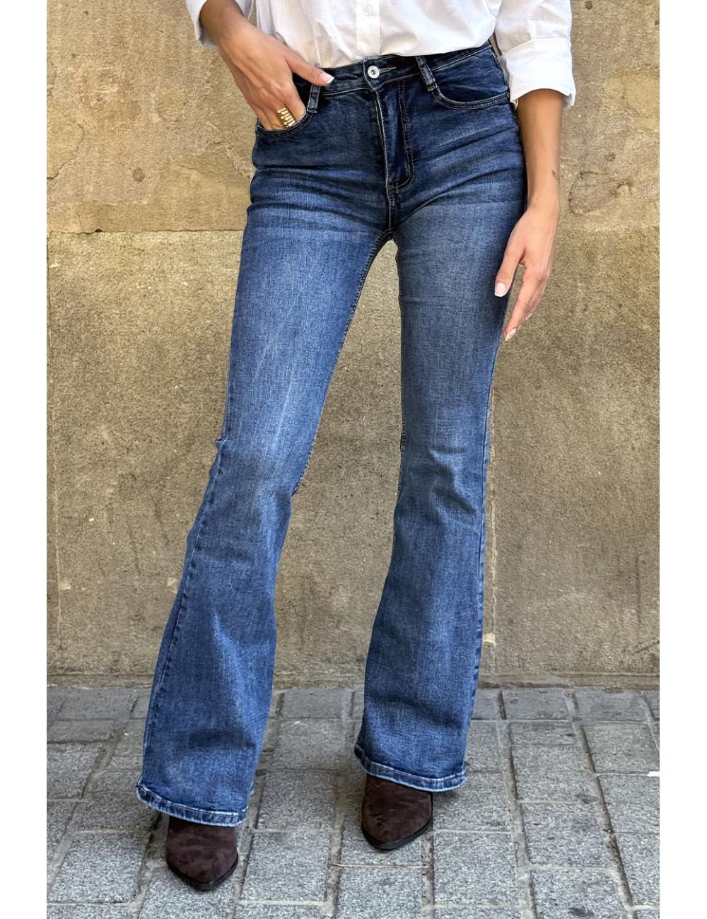 Mid-rise stretch flare jeans with a push-up effect. Made from faded denim fabric.