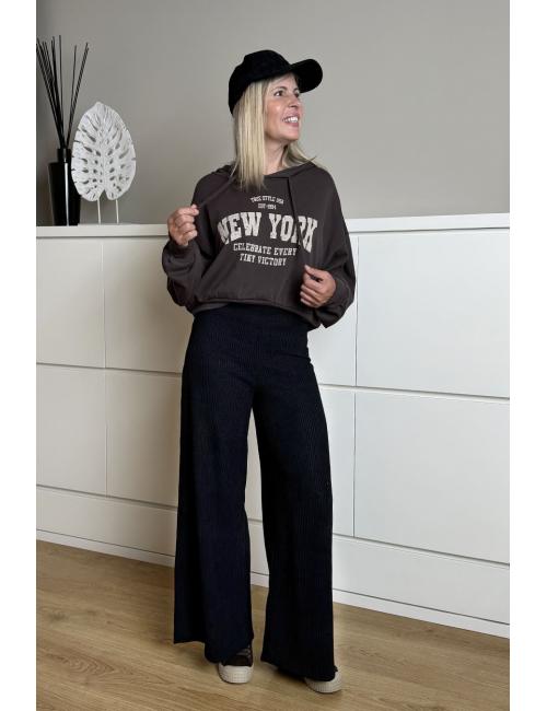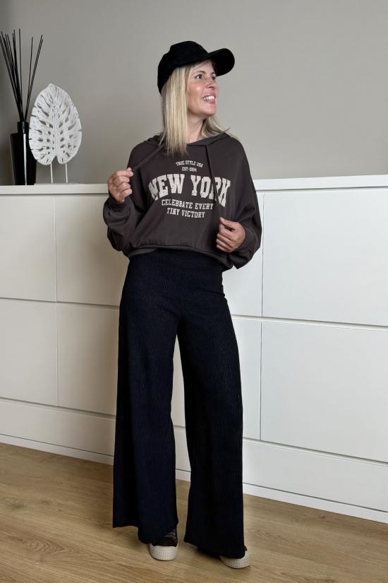 High-waisted palazzo trousers made from corduroy. High rise and elasticated waistband. Comfortable and versatile trousers, ideal for adding a casual touch to your everyday or weekend looks.
