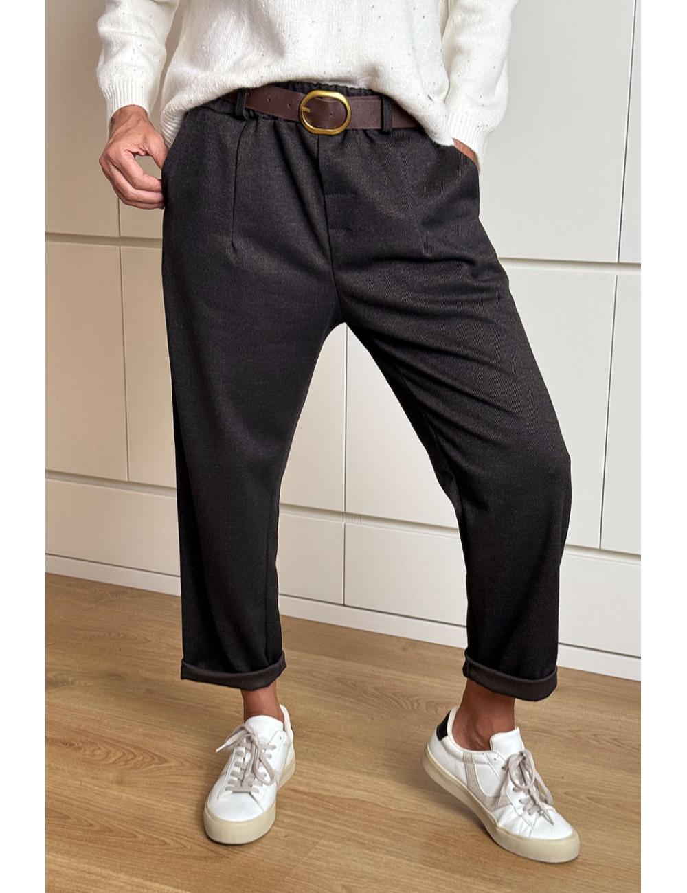 Mid-rise pleated joggers. Elasticated waistband with drawstring for a better, more comfortable fit. Two side pockets. Textured striped fabric. Comfortable trousers, perfect for your cosy office or weekend looks.