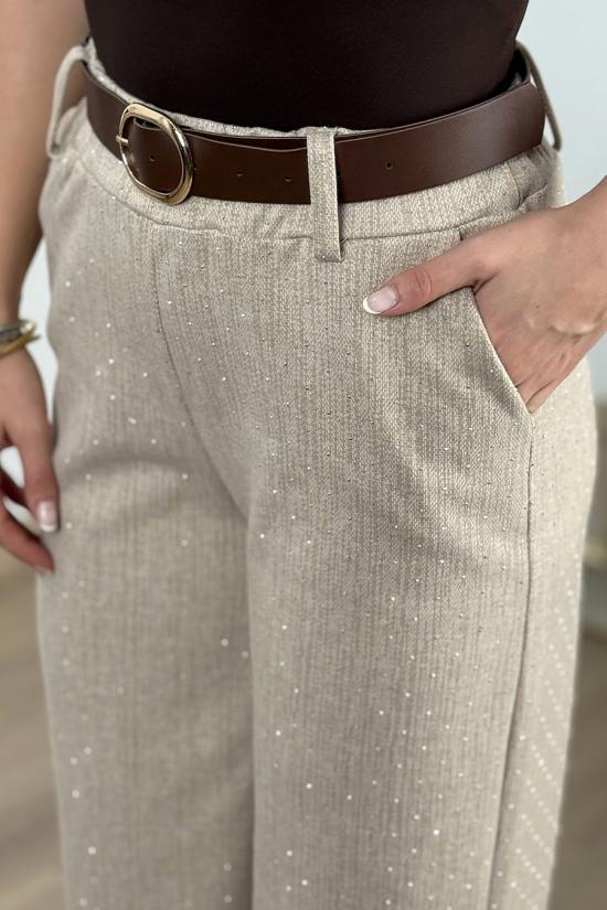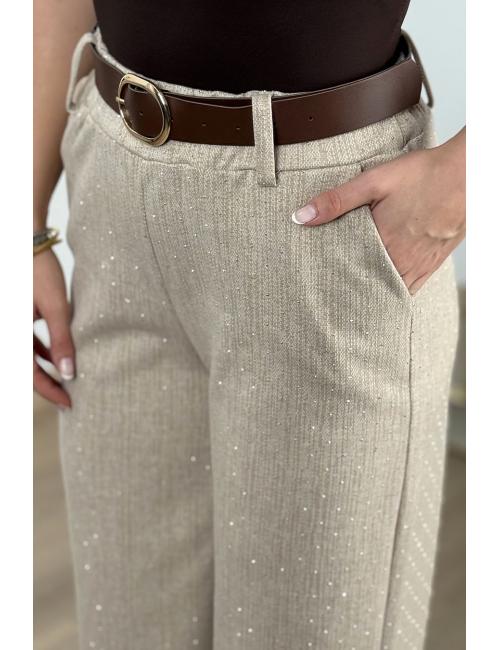 Palazzo trousers made from soft, textured velvety stretch knit fabric. High waist, two pockets and elastic at the back of the waist. A unique and stylish pair of trousers, ideal for your office looks and also for special occasions and celebrations.